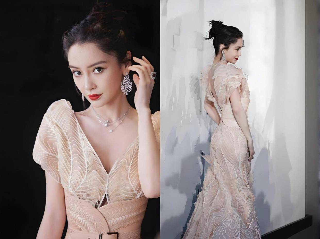 Baby穿着高定站在这里,反而让高高在上的礼服卸下了距离感。